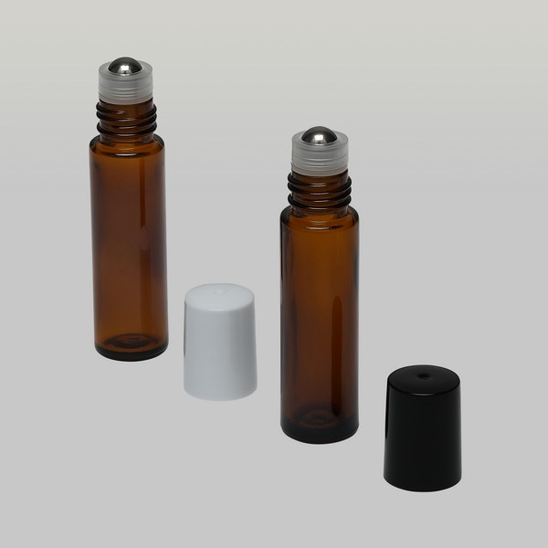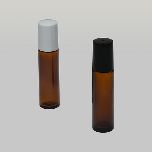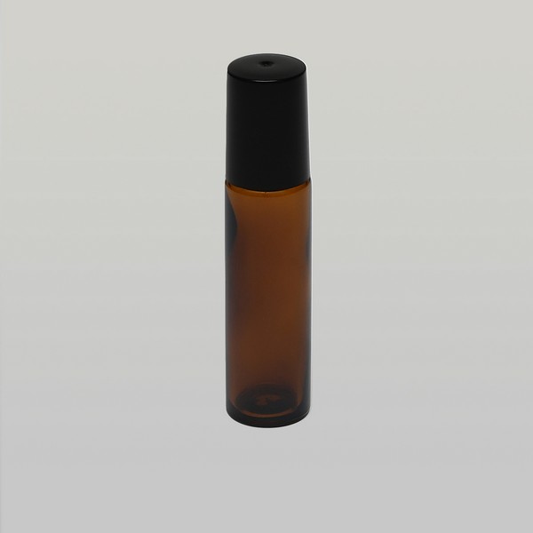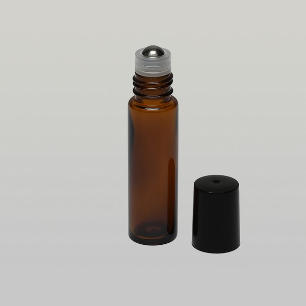 1/3 oz (10ml) Roll-On Cylinder Amber Glass Bottle with Stainless Roller and Black/White Cap